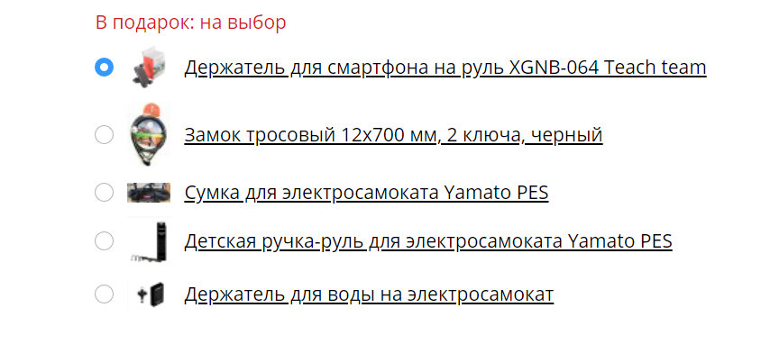 При покупке любого вида электротранспорта в Томске мы дарим в подарок нужные аксессуары. Перечень подарков вы можете увидеть в карточке товара.